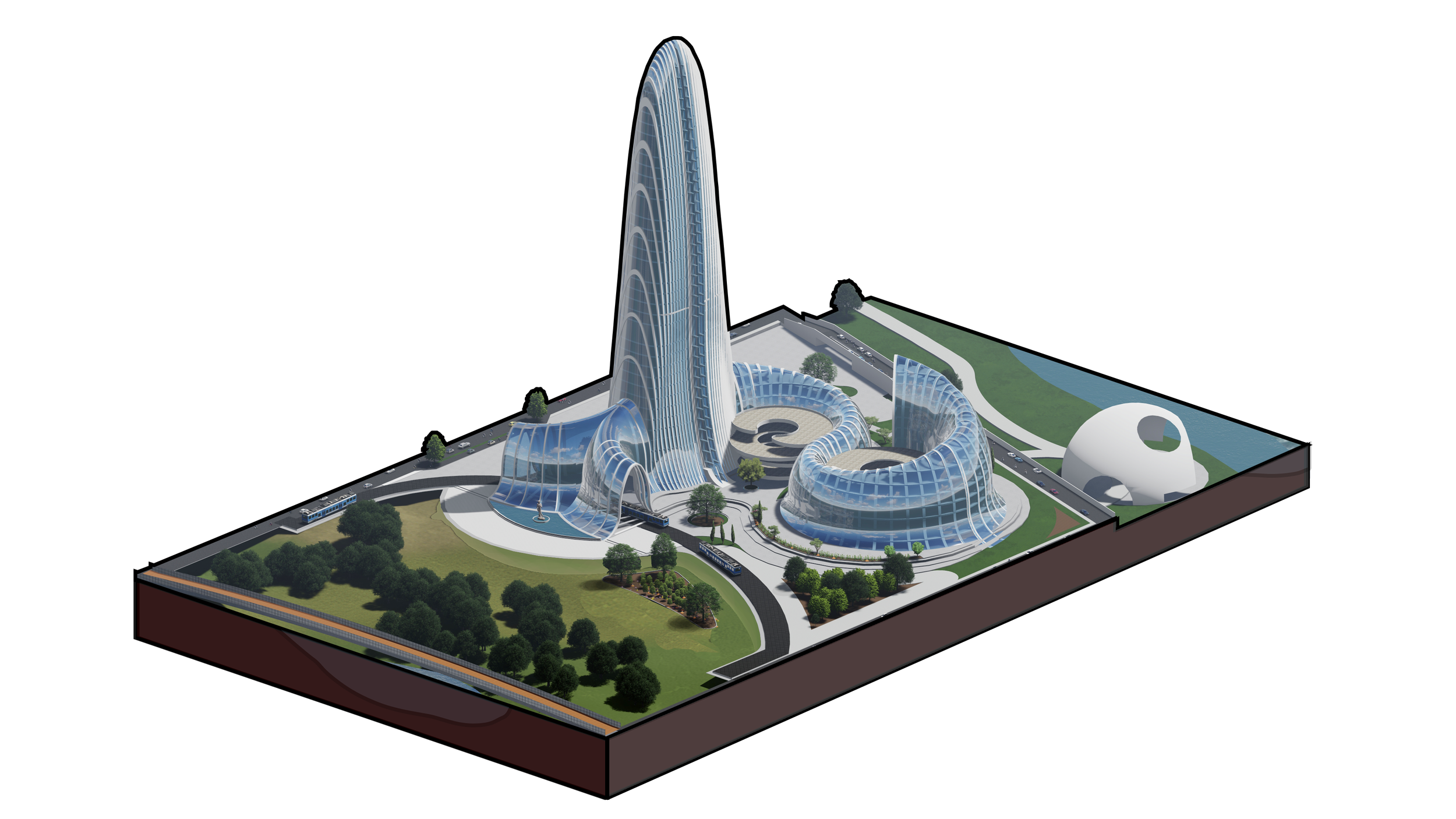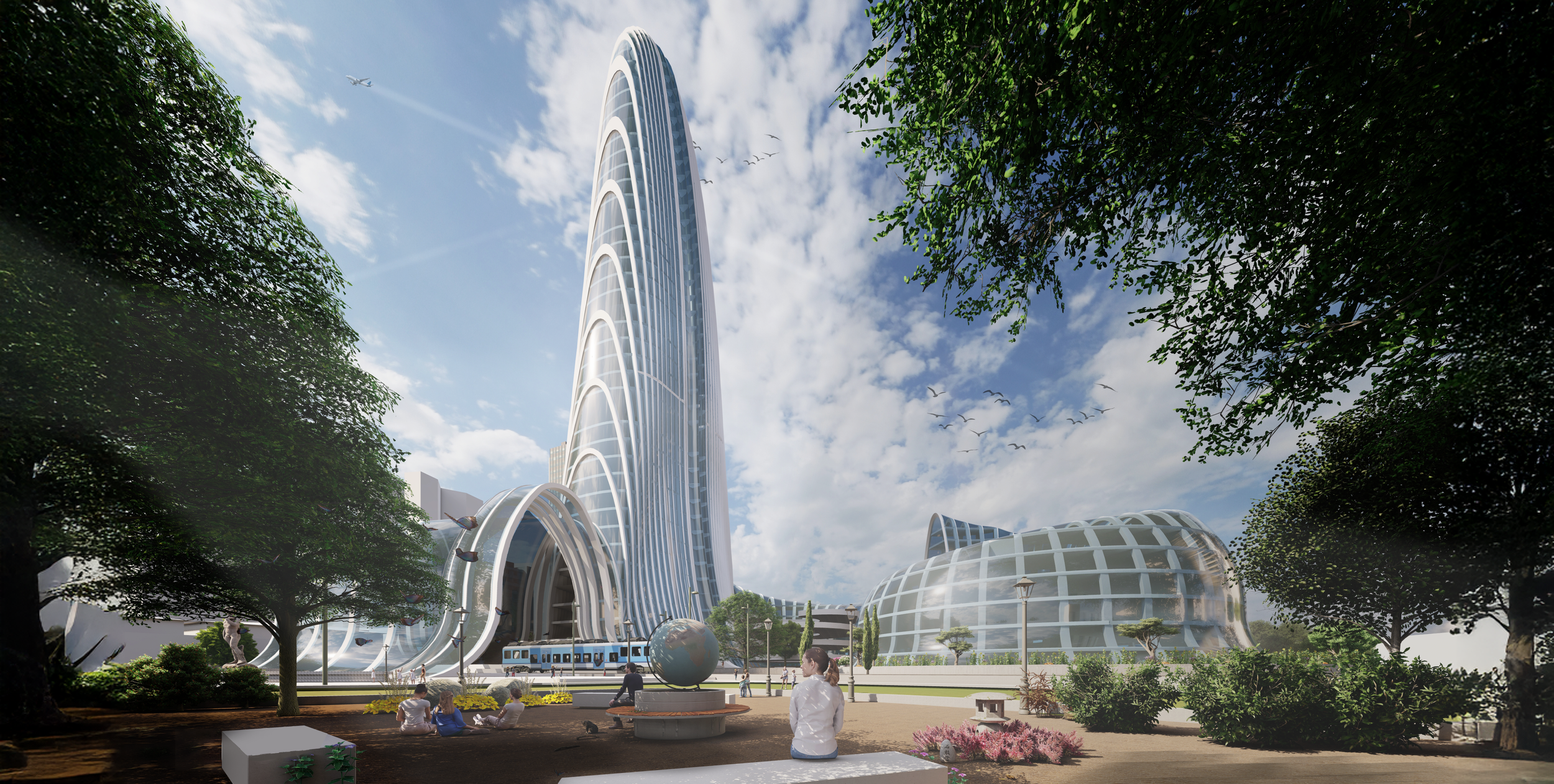 This 42-story high-rise residential tower is envisioned for the construction of a utopian modern city in Italy, set in the year 2050. The mixed-use complex features an Uffizi Expansion Museum, a vibrant five-story retail and restaurant center, and an integrated tram station to enhance public accessibility.